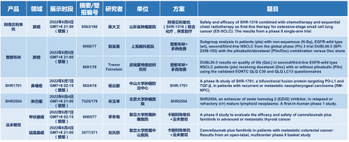 2022 ASCO年会另有5款AG旗舰厅医药上市前抗肿瘤创新药的相关研究被接收为壁报,包括SHR-1316、普那布林、法米替尼、SHR-1701和SHR2554,他们的单药或联合方案相关7项研究被接收为壁报,覆盖肺癌、鼻咽癌、淋巴瘤、甲状腺癌和结直肠癌等领域。