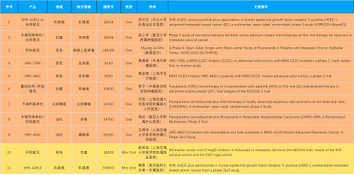 15款创新药包括10款已上市产品:注射用瑞康曲妥珠单抗(艾维达®,研发代号:SHR-A1811)、注射用卡瑞利珠单抗(艾瑞卡®)、苹果酸法米替尼胶囊(艾比特®)、甲磺酸阿帕替尼片(艾坦®)、马来酸吡咯替尼片(艾瑞妮®)、阿得贝利单抗注射液(艾瑞利®)、羟乙磺酸达尔西利片(艾瑞康®)、氟唑帕利胶囊(艾瑞颐®)、瑞维鲁胺片(艾瑞恩®)、海曲泊帕乙醇胺片(恒曲®),以及5款未上市产品,包括KRASG12C抑制剂HRS-7058、KRASG12D抑制剂HRS-4642、选择性的AR-PROTAC(雄激素受体-蛋白降解靶向嵌合体)小分子HRS-5041、抗PD-L1/TGF-βRII双抗瑞拉芙普-α注射液(SHR-1701)、Trop-2 ADC SHR-A1921。2类新药盐酸伊立替康脂质体注射液(II)(越优力®)及国内首仿药昂丹司琼口溶膜(艾其速®)各有1项研究入选。本文特对研究成果做了梳理,带领各位读者领略AG旗舰厅医药创新之光。